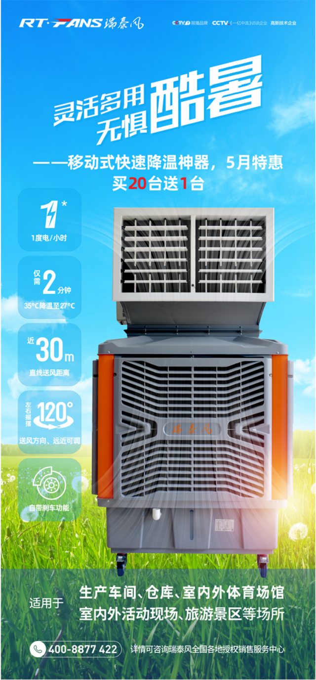 五月初以來,全新一代瑞泰風(fēng)移動式環(huán)??照{(diào)---多用途全場景快速降溫神器已經(jīng)正式上市。該款產(chǎn)品一經(jīng)推出就被各方譽(yù)為移動式冷風(fēng)機(jī)“史上最靚的仔”, 具有高端大氣的科技外觀,強(qiáng)勁的降溫和大風(fēng)量遠(yuǎn)距離送風(fēng)性能,性價比極高,一推出就收到不少咨詢和持續(xù)的訂單,料想該款設(shè)備將會成為環(huán)??照{(diào)行業(yè)整個市場.上的明星產(chǎn)品。